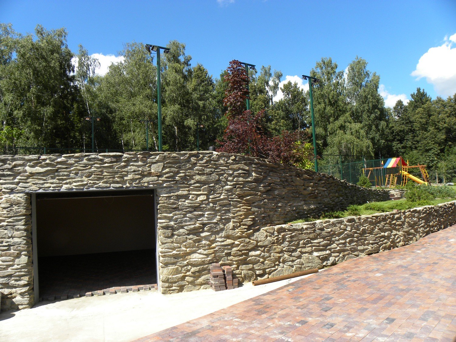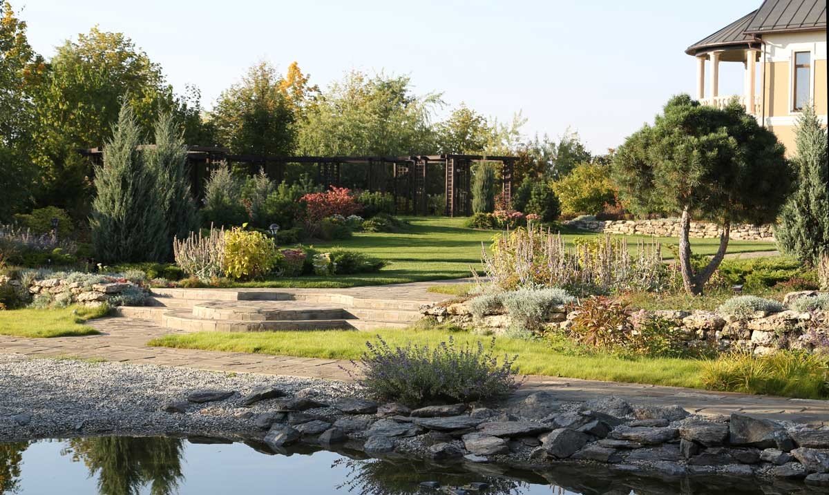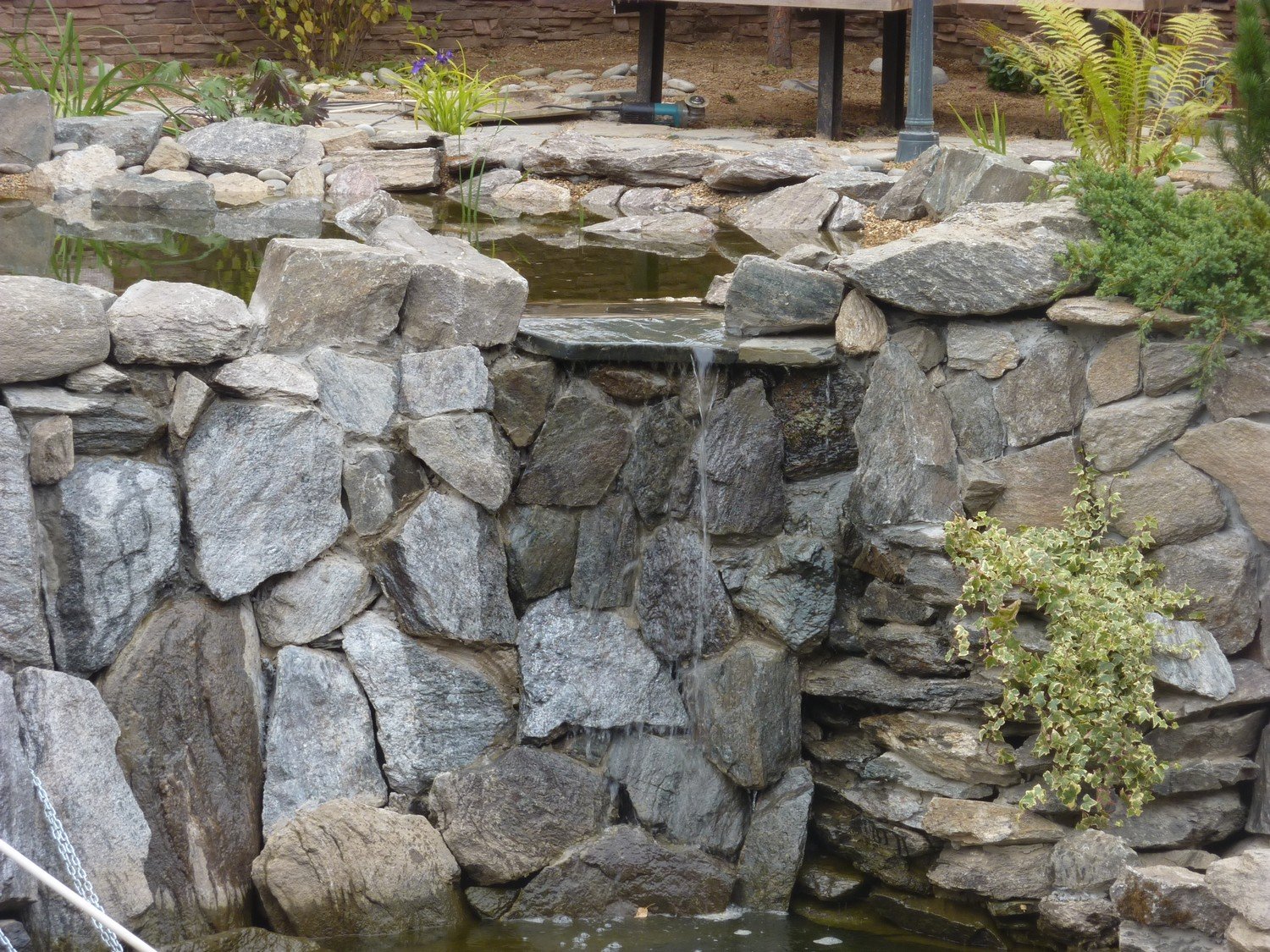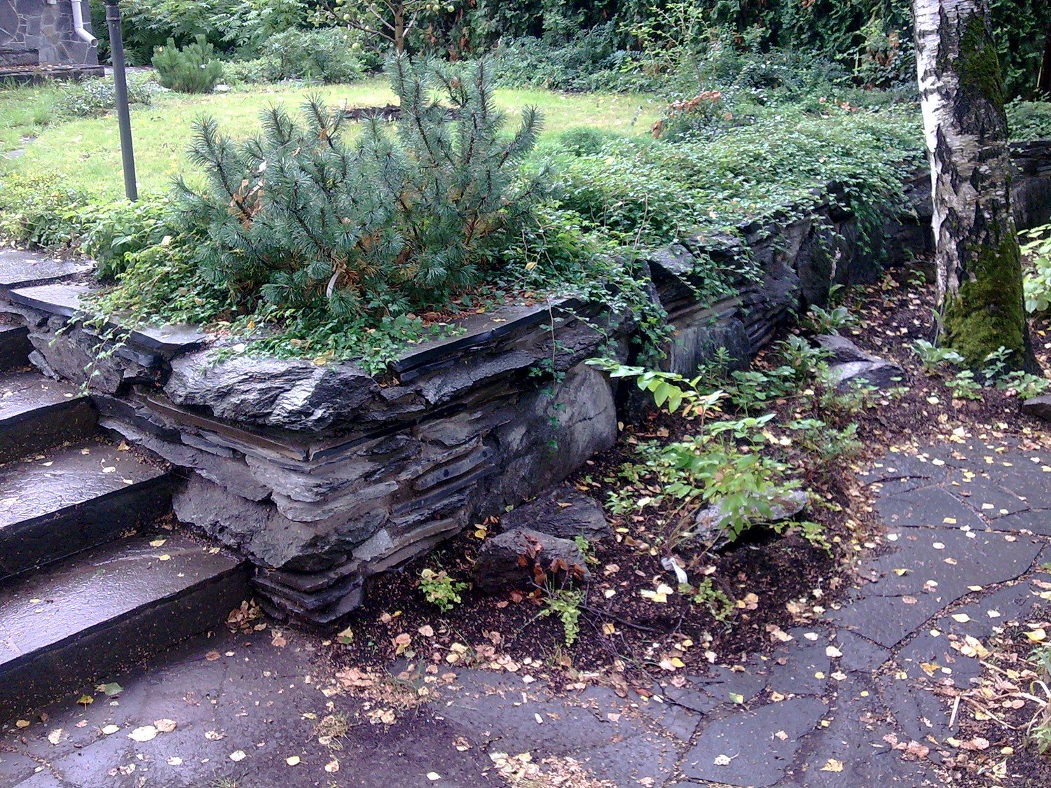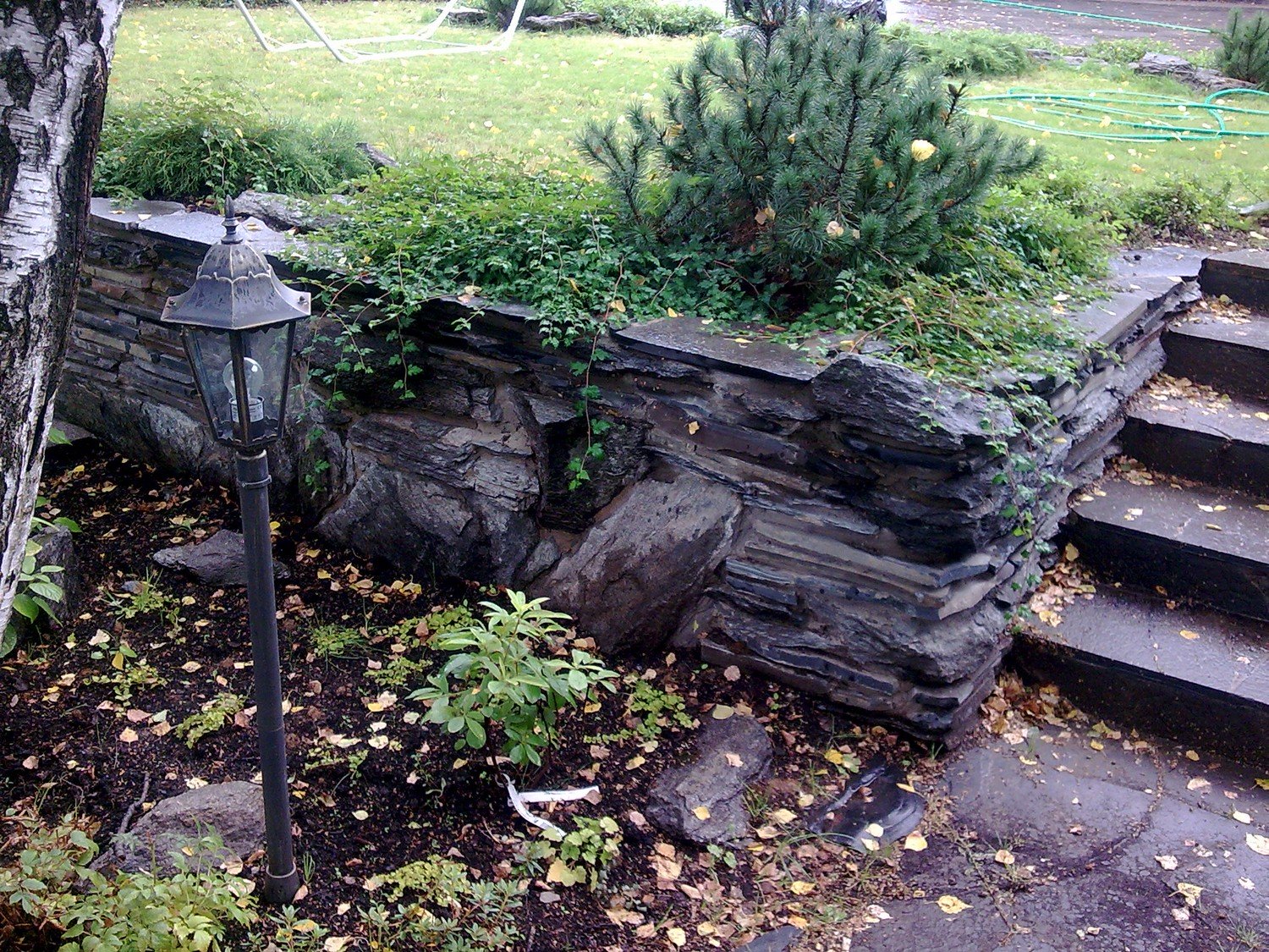 - Кучи с объемными камнями или щебнями (декоративные крошки, округлый бутовый камень, окол)